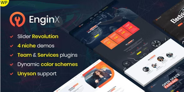 Introducing EnginX – a contemporary WordPress theme specifically engineered for auto repair services, roadside assistance, and routine car maintenance. This theme is not just perfect for car mechanics, auto repairs, car workshops, car washes, car parts dealers, and car rentals, but it is also suitable for any small to medium-sized business that seeks to establish a robust online presence.